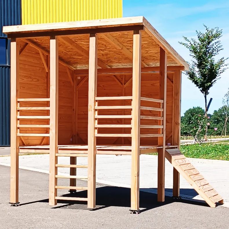 Cabane pour enfants sur pilotis en bois épaisseur 21mm avec plancher et portillon. Escalier en échelle