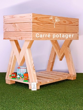 Carré potager en bois épaisseur 15mm sur pieds avec étagére.