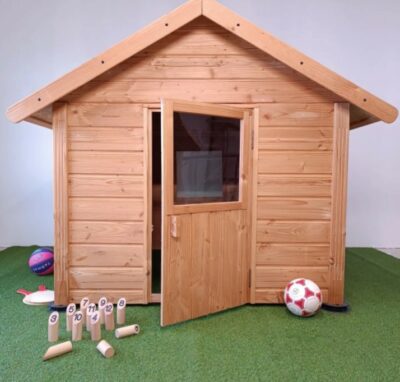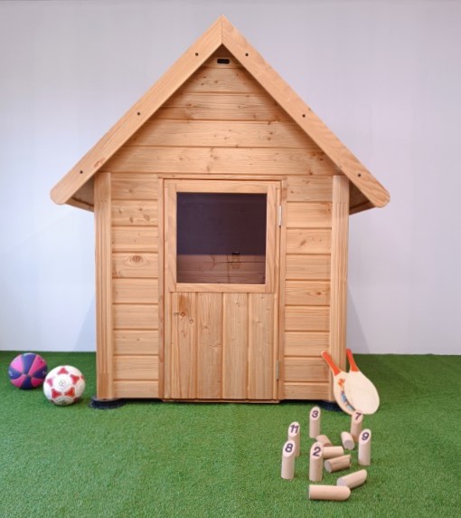 Cabane pour enfants en bois épaisseur 21mm avec plancher et porte vitrée.